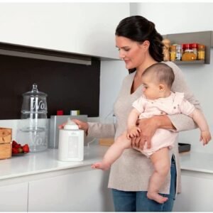 - CHAUFFE-BIBERON : Réchauffe et décongèle en toute sécurité le lait et les aliments pour bébé. Réchauffe le lait maternel jusqu’à atteindre la température idéale pour la tétée, ce qui permet de préserver les propriétés nutritionnelles du lait maternel.