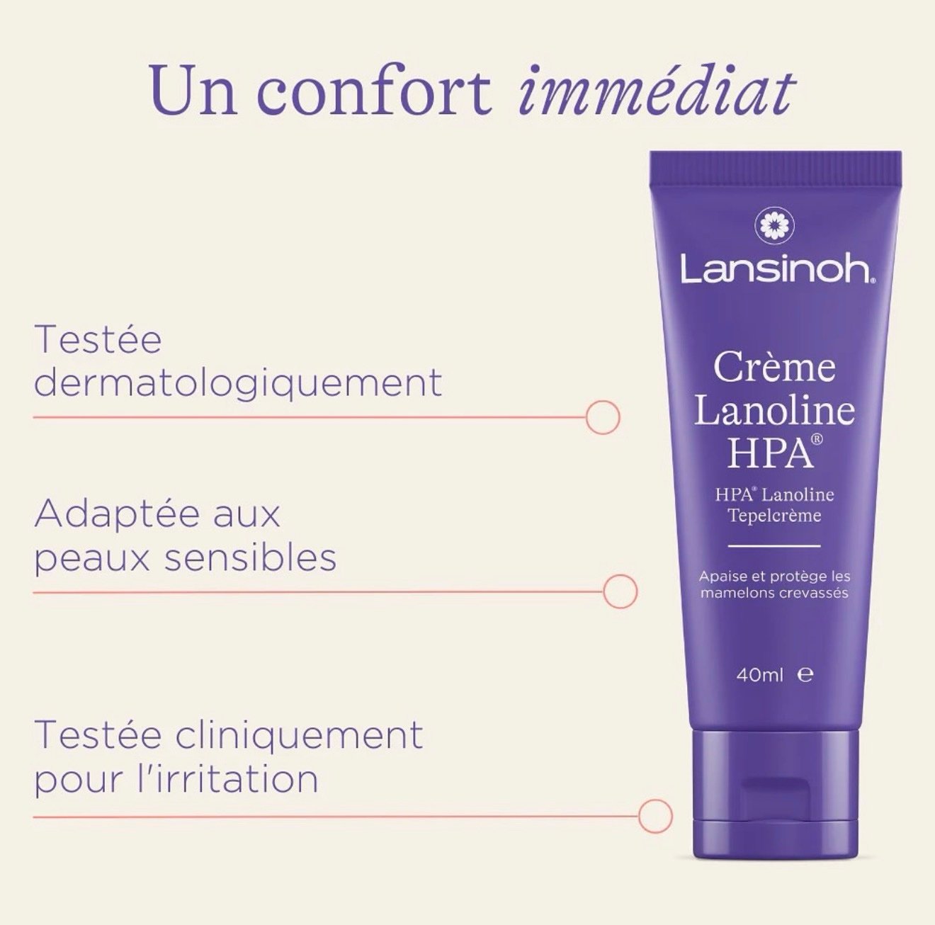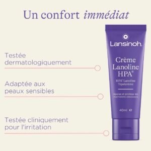 La crème lanoline HPA® Lansinoh est un soin formulé à partir de 100 % de lanoline hautement purifiée, destiné à apaiser et protéger les mamelons douloureux ou fissurés pendant l’allaitement.