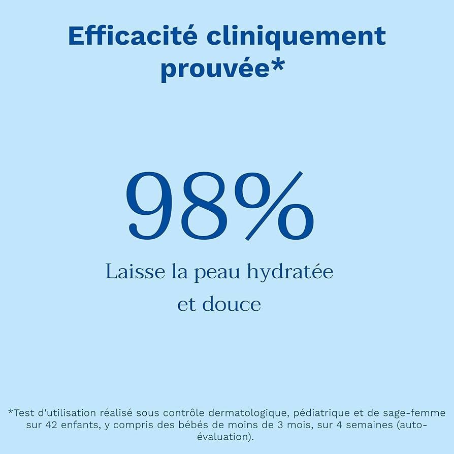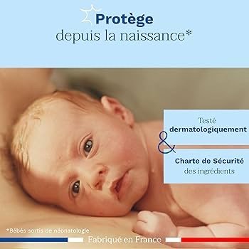 - Hydratation et protection : Aide à restaurer et protéger le film hydrolipidique de la peau délicate du bébé.