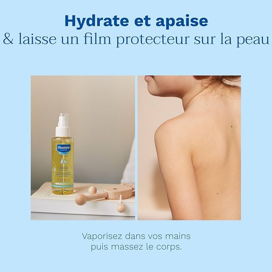 L’Huile de Massage Mustela est un soin hydratant et apaisant composé à 99 % d’ingrédients d’origine naturelle, spécialement conçu pour les nouveau-nés, les bébés et les enfants. Elle est particulièrement appréciée pour sa texture d’huile sèche qui ne laisse pas de film gras tout en facilitant le massage.
